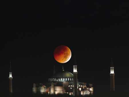 Hagia Sophia with eclipsed moon. Ramadan or islamic concept image. Laylat al-qadr or kadir gecesi background.