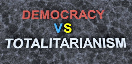Democracy or Autocracy. The cubes form the words Democracy or Autocracyr. Concept of choosing Democracy or Autocracy