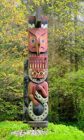 Indian totem poles in Stanley park in Vancouver, Canada.