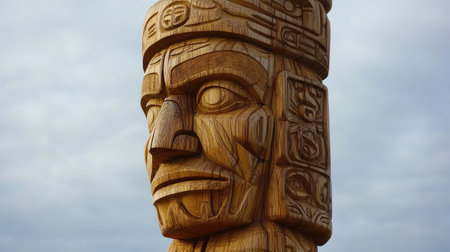 Detailed wooden totem pole with intricate carvings