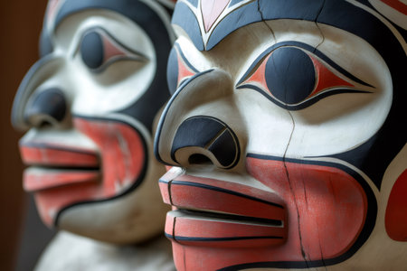 Hand painted masks used in cultural ceremonies and rituals of indigenous people from the northwest coast of North America