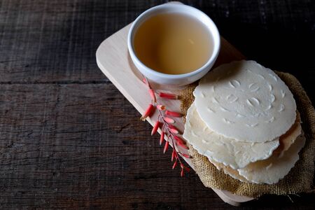 Coconut biscuits curl or Tong Muan, thai sweetmeat made of flour, coconut milk and egg.