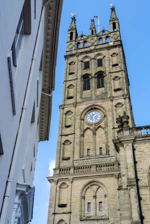 Exeter. June 02, 2018. Beautiful, medieval houses around the square near the Exeter Cathedral. Devon, South West England, United Kingdom