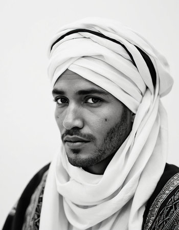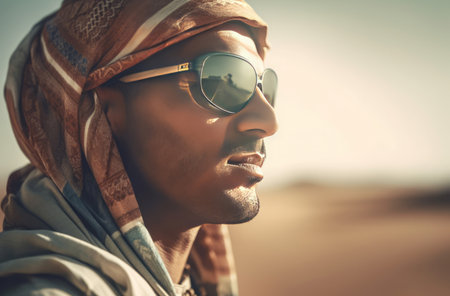 Spirit of the Sands: A Cultural Journey with an Ethnic Man in a Traditional Headscarf