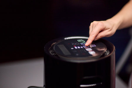 Innovative smart kitchen appliance with touchscreen display in modern kitchen setting. That the image is generated using AI.