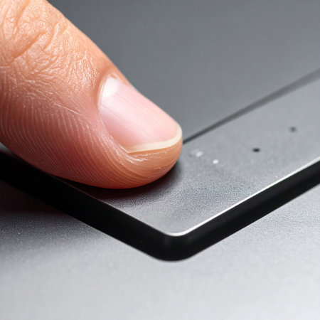 A close-up view of a thumb pressing a biometric scanner, unlocking a device with a simple touch.