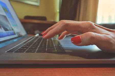woman hand on laptop’s keyboard