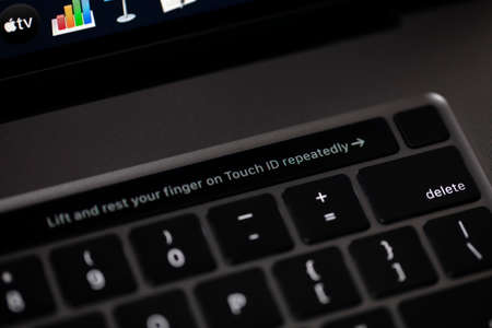 New york, USA - july 24, 2019:Log in using touch id on modern macbook pro
