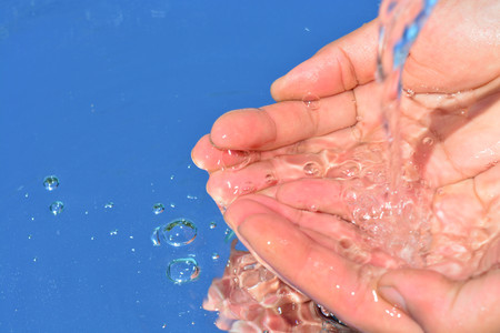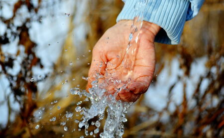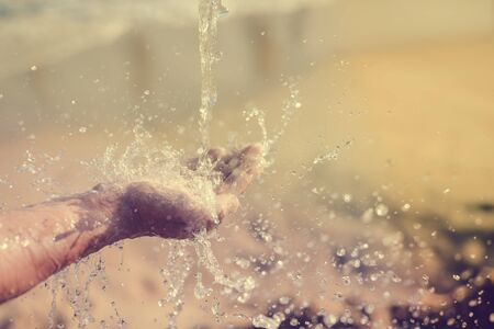 Water pouring on hand in morning ligth background