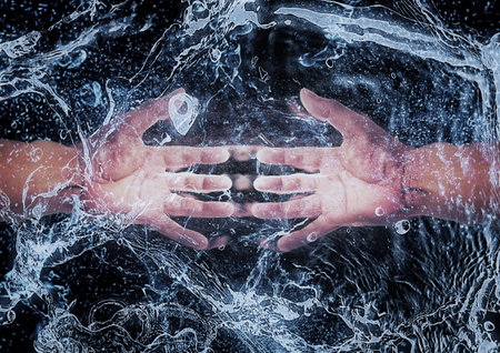 Hand on water splash background