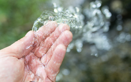 Fresh clean and pure bubbling water splashing on hand