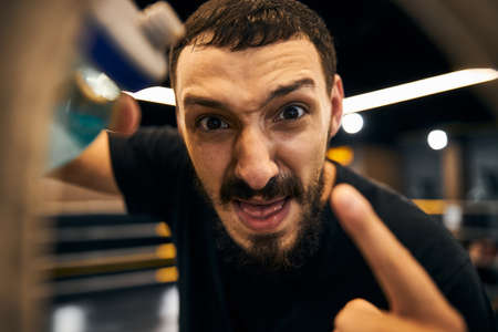 disgruntled angry man with a beard gritted his teeth and clenched his fists. angry at everyone
