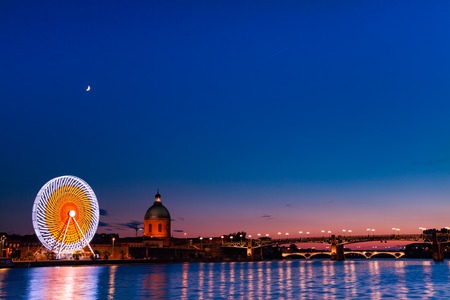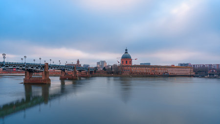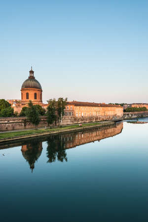 Garonne river and Dome of the 'Hopital de la Grave' at dusk in Toulouse, France