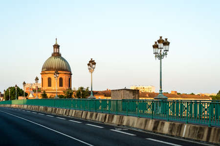 The dome of La Grave and the Pont Saint Pierre in the evening on the Garonne, in Toulouse in Haute-Garonne in Occitanie, France