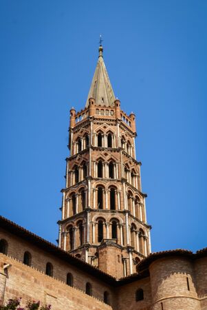 St. Sernin Basilica, It was built in the Romanesque style between about 1080 and 1120, Toulouse, France. The view of bell tower and apse.