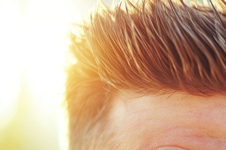 Close up of stylish hair in bright sunlight.