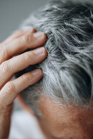 Gray hair on the head of a man. close-up