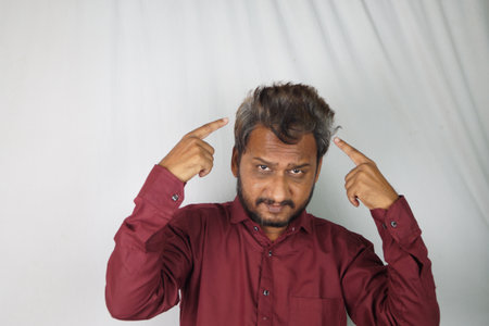 A worried Indian man showing his white hair and hair loss problem at a young age