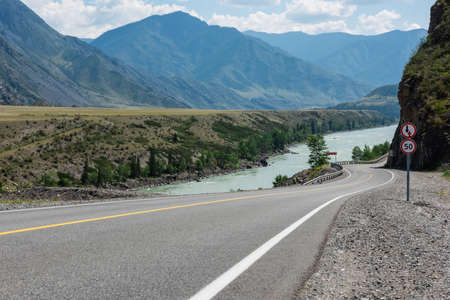 Republic of Altai Mountains paved road called Chuiski stretches to the Mongolian border