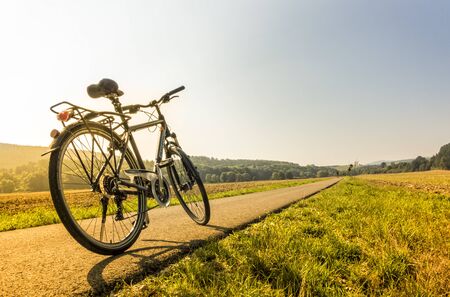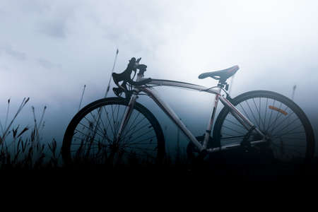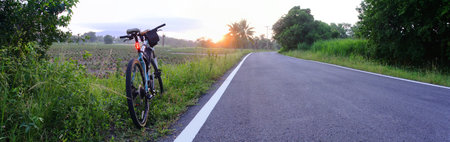 CHONBURI, THAILAND - 27 MAY : Mountain bike paking beside road with sunrise sky on 27 May 2019 in Chonburi, Thailand