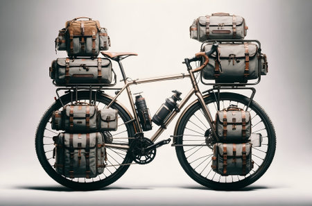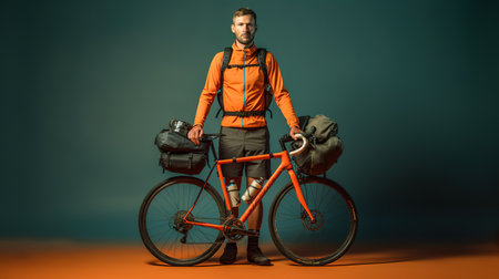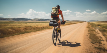 Eco travel and responsible tourism. Male cyclist on touring bicycle cycling. AI Generated