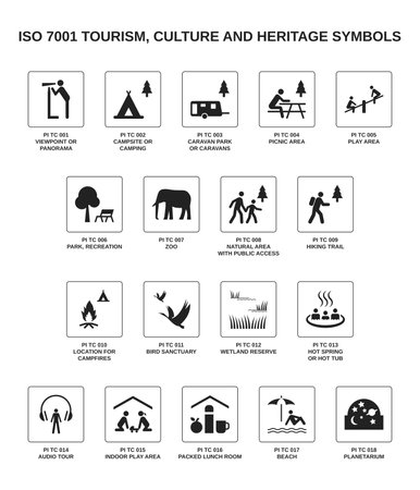 set of iso 7001 tourism. culture and heritage symbols on white background