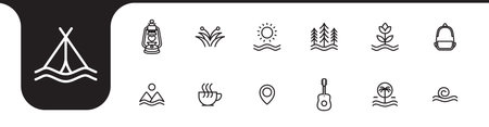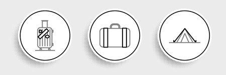 Set line Tourist tent Suitcase for travel and stickers and icon. Vector.