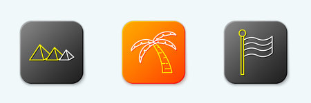 Set line Egypt pyramids, Egyptian Scarab and Flag Of icon. Vector.