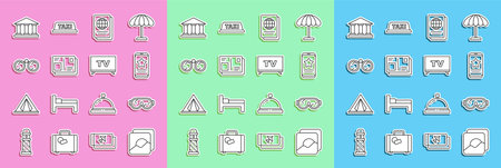 Travel vector icon set. Tour sign collection. Simple flat design for web mobile app UI Shape elements isolated on white