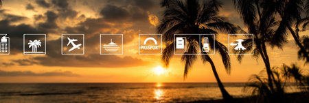Icons include beach, sun, sunglasses, ice cream, flip flops and palm trees. Ideal for creating summer themed designs or social media posts. The line style gives the icons a modern and clean look.