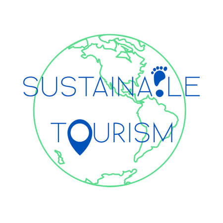 Sustainable tourism concept isolated on white background. Stock vector illustration of earth globe with footprint and navigation position icon.