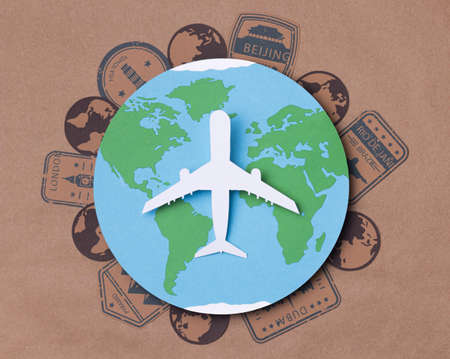Map and plane for world tourism day, vector art illustration.