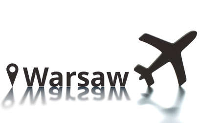 Warsaw text with city geotag and plane icon. Destination concept