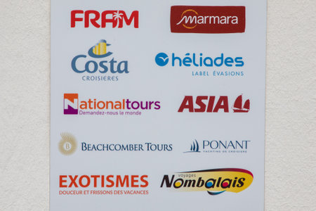 lyon , France - 08 08 2023 : travel agency gathering all sign logos of clubs tour operators and cruise lines in france