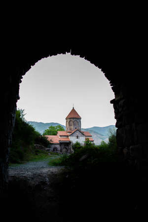 The old arch and the apostolic church. The tunnel leads directly to the monastery