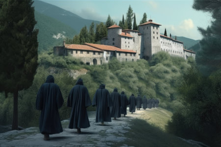 Monks catholic monastery. Pray church. Generate AI