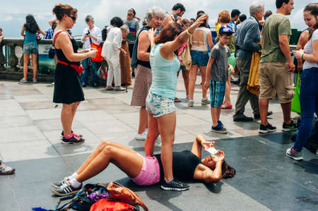 BARCELONA, SPAIN - APRIL, 16, 2017. Tourists making photos at city viewing point
