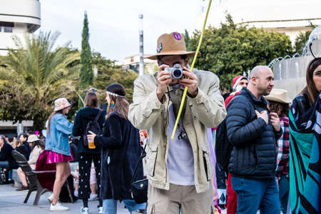 Tel Aviv, Israel - March 18, 2022 Israeli people at Dizengoff square dressed with costumes for the Purim carnival celebration which takes place on March in Israel, Purim festival is a Jewish tradition