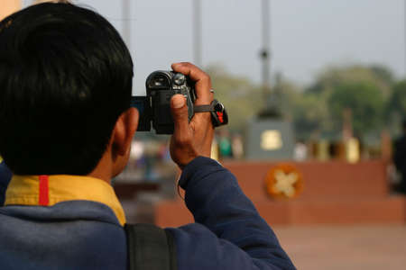 Tel Aviv Israel January 30, 2020 View of unidentified press photographer shooting people at Herbert Samuel Promenade in Tel Aviv in the morning