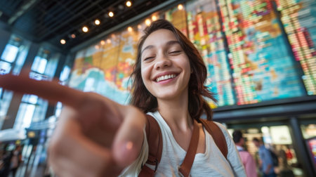 Dynamic image of a traveler exploring a world map filled with different objects, awakening wanderlust. Generative AI