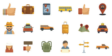 Hitchhiking icons set flat vector isolated
