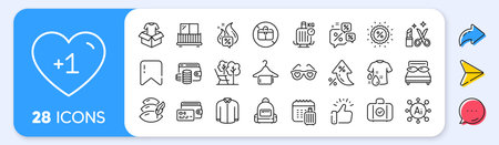 Baggage scales, No handbag and Deckchair line icons. Interest rate, AI generate, Inflation icons. Pack of Baggage calendar, Discounts chat, Balcony icon. Wash t-shirt, Pillow, Wallet pictogram. Vector