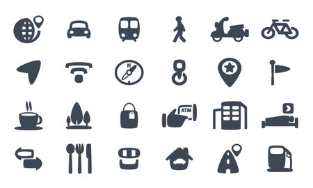 A collection of vector icons for navigation and mapping.