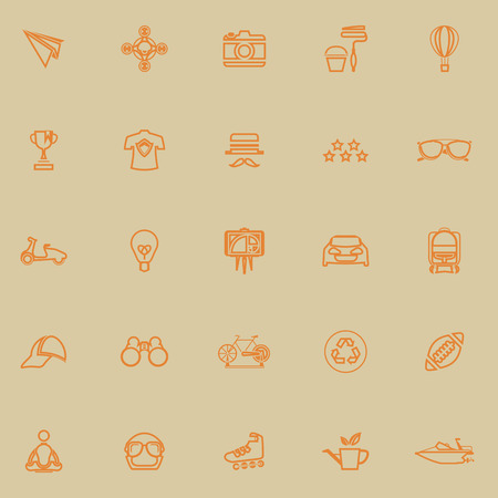 Hipster line icons orange color, stock vector