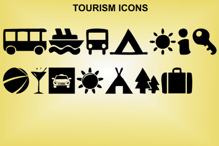 tourism icons set, vector illustration. Flat design style.