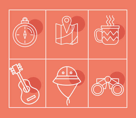 bundle of six camping set icons vector illustration design