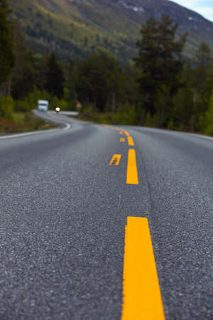 beautiful windy road at the norwegian mountains