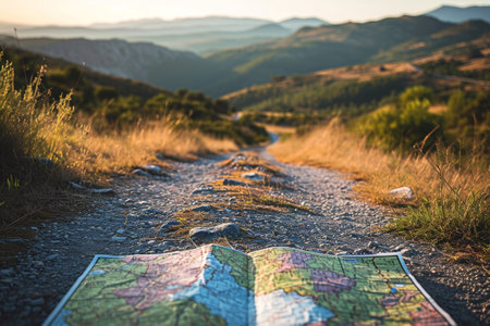 A map placed on the side of a dusty dirt road in a rural setting, Roadmap representing financial planning journey, AI Generated