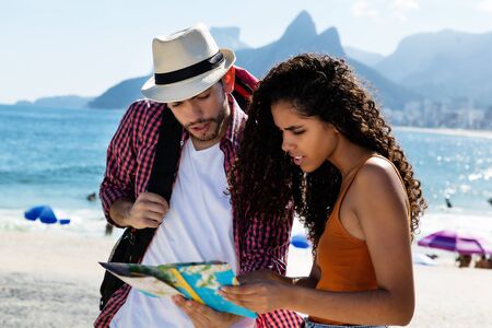 Tourist at Rio de Janeiro and brzailian woman looking at map