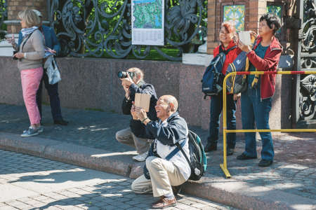 St. PETERSBURG, Russia-On June 7, 2015, Chinese tourists walk around St. Petersburg and take photos of the sights and architecture of the city.